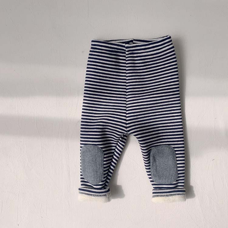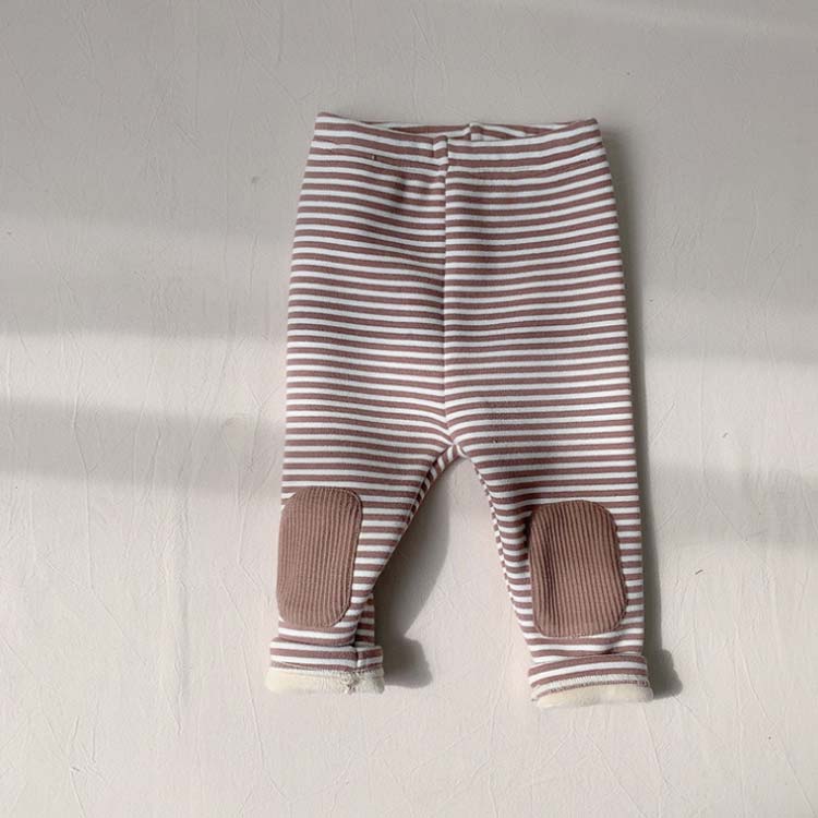 可愛い膝パッチデザインのベビー用裏起毛レギンス。
